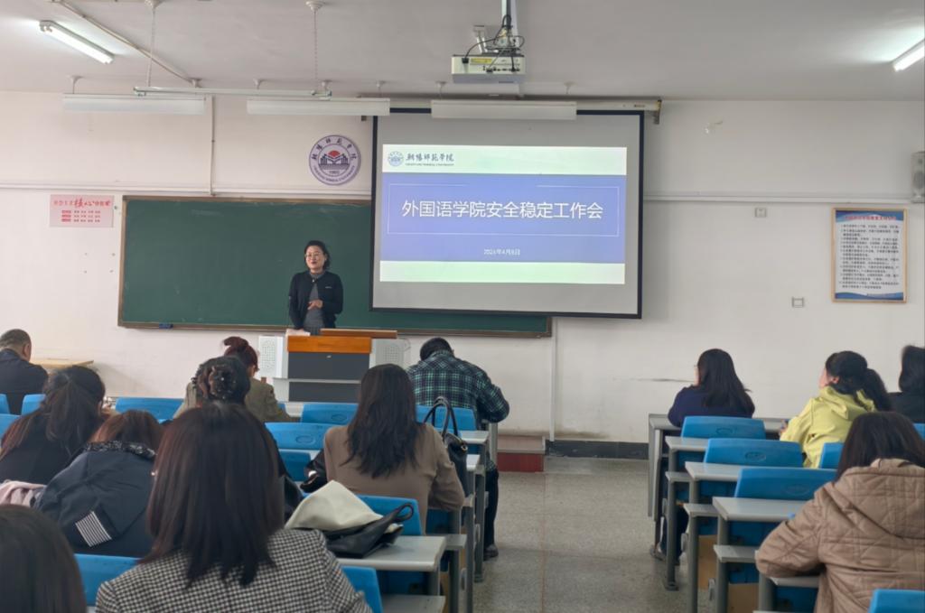 4月8日,外国语学院在教3合班教室401召开安全稳定工作专题会议,全体教职工参会,会议由学院党总支书记刘炜炜主持。